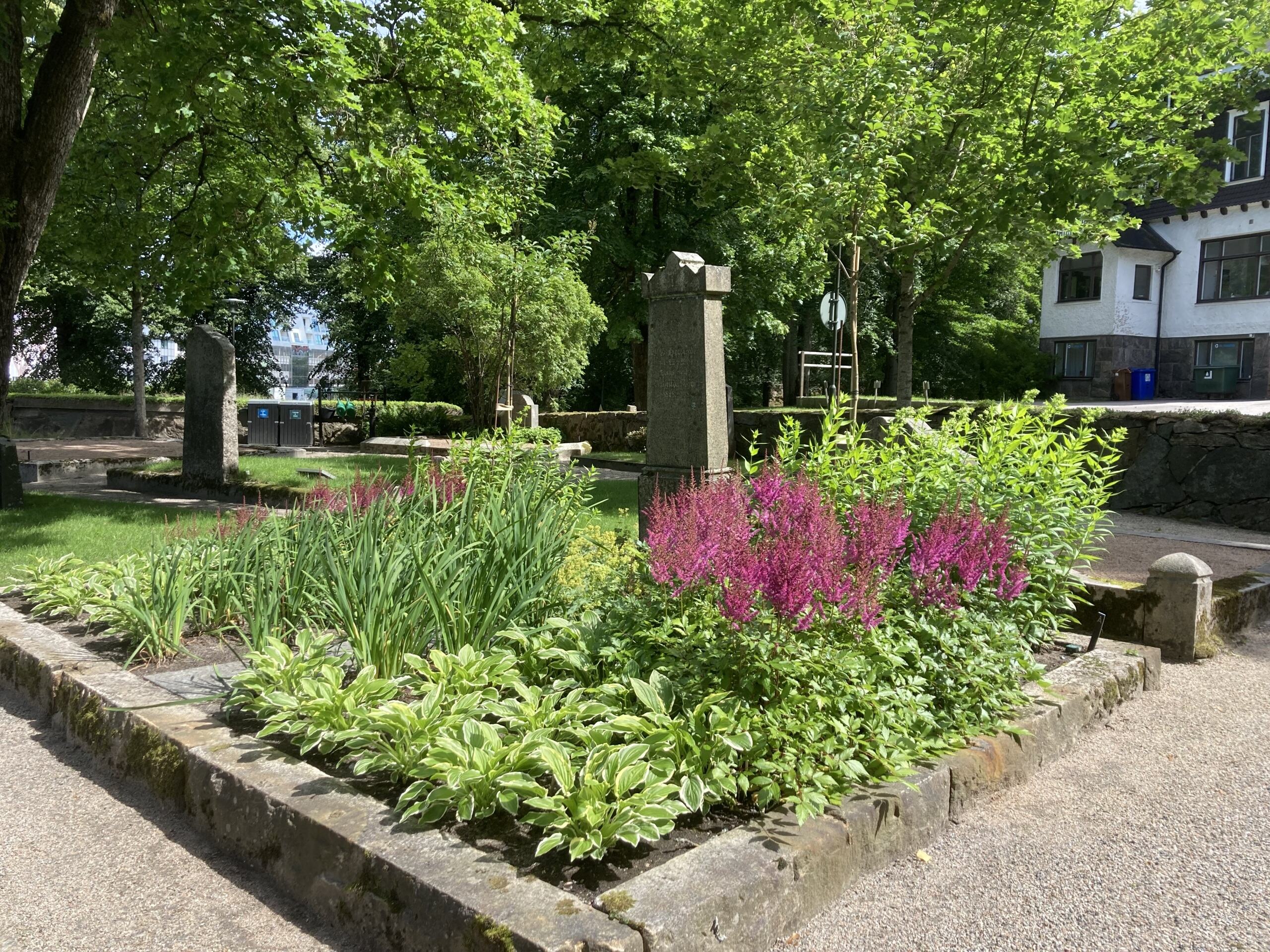 Sedan några år tillbaka har återlämnade familjegravar på S:t Ansgars griftegård och S:ta Birgittas griftegård fått nytt liv. Här tar vi chansen att främja den biologiska mångfalden genom att plantera perenner som lockar till sig fjärilar, bin och andra pollinatörer. I några av platserna finns även lökväxter planterade och en del mindre träd.