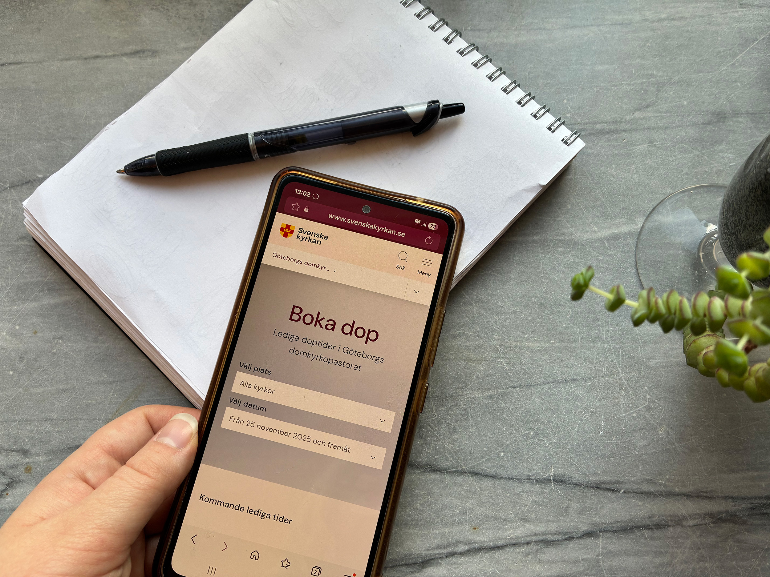 Hittar du ingen tid som passar, vill ha dopet i en annan kyrka i församlingen än vad som syns i webbokningen, på annan plats, saknar fullständigt personnummer på den som ska döpas eller har andra önskemål går det alltid bra att ringa expeditionen på tfn 031-731 66 00, eller mejla till gbg.bokning.centrum@svenskakyrkan.se