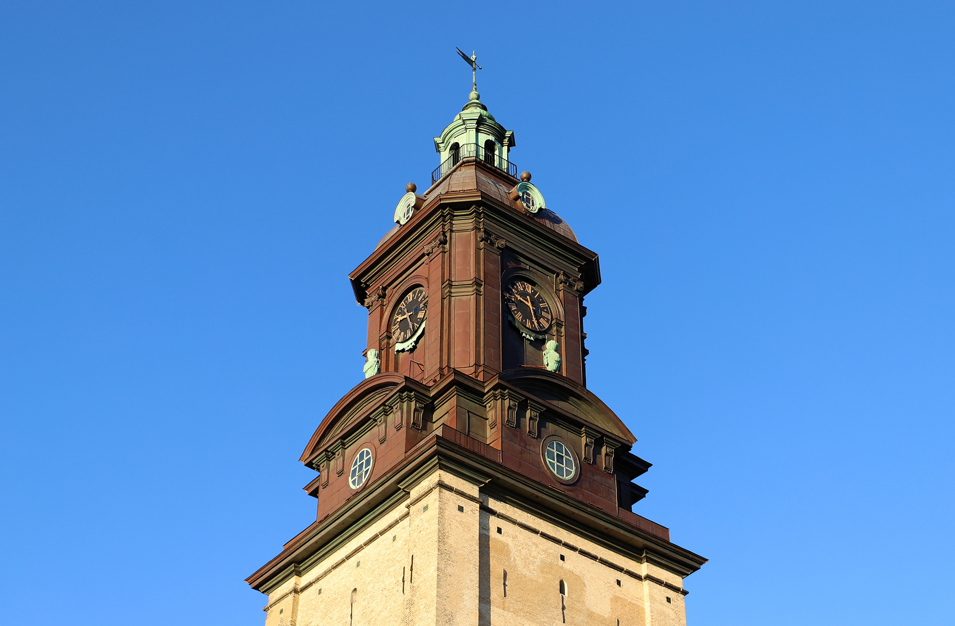 Gå upp i tornet i Göteborgs äldsta bevarade kyrkbyggnad, hör om dess historia och se bl.a. de maffiga kyrkklockorna, klockspelet med sina 42 små klockor, tornväktarrummet och utsikten över stan.