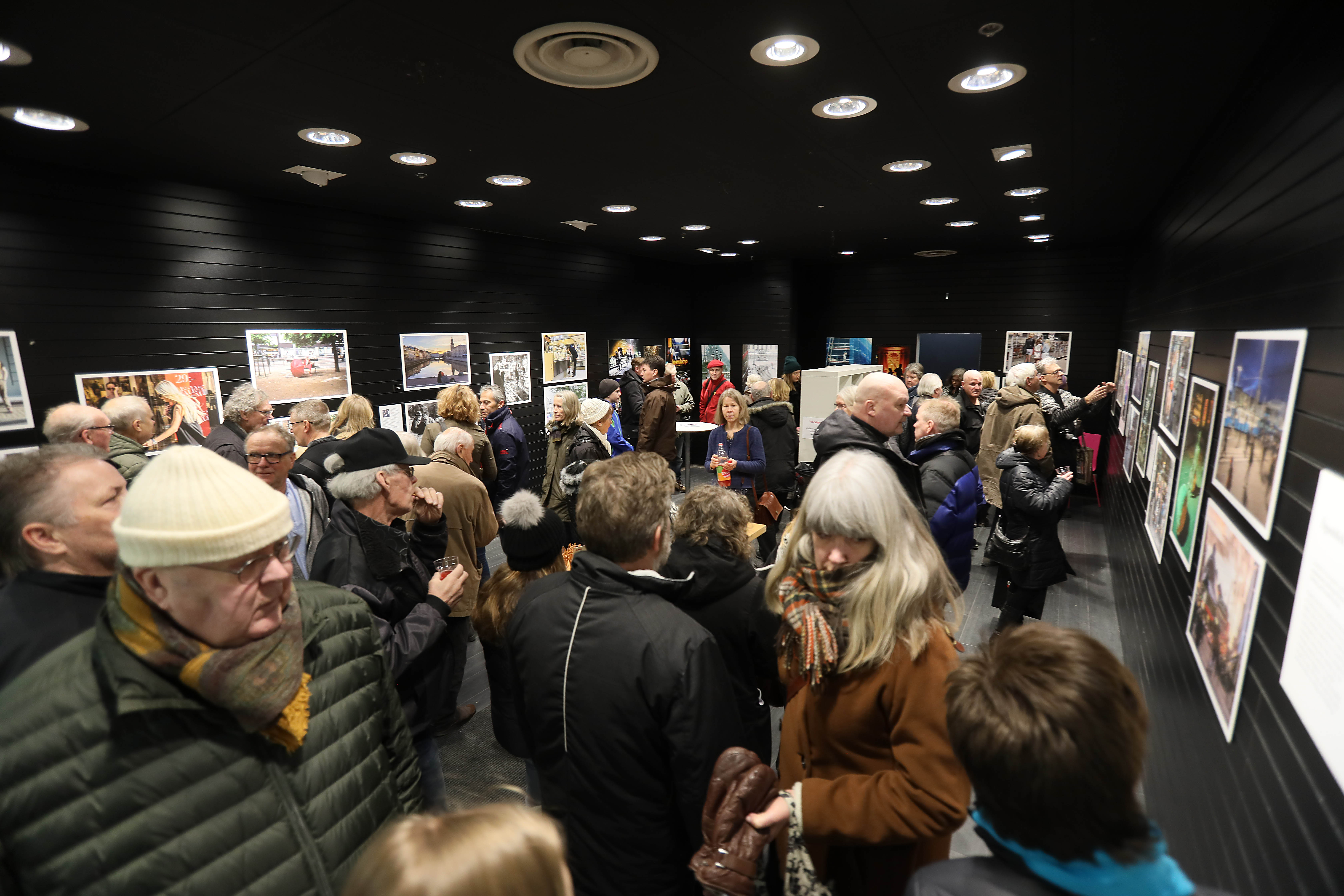 Det strömmade in nyfikna människor under de timmar vernissagen höll öppet och det ledde till många samtal om platserna förr och nu och om stämningarna och händelserna som fotograferna har lyckats fånga i sina bilder. En del av besökarna kom själva med en kamera över axeln. Många hade blivit inlockade när de läst om Ögonblicksprojektet och blev glada över att kunna få träffa fotograferna och diskutera bilder och fotografering.