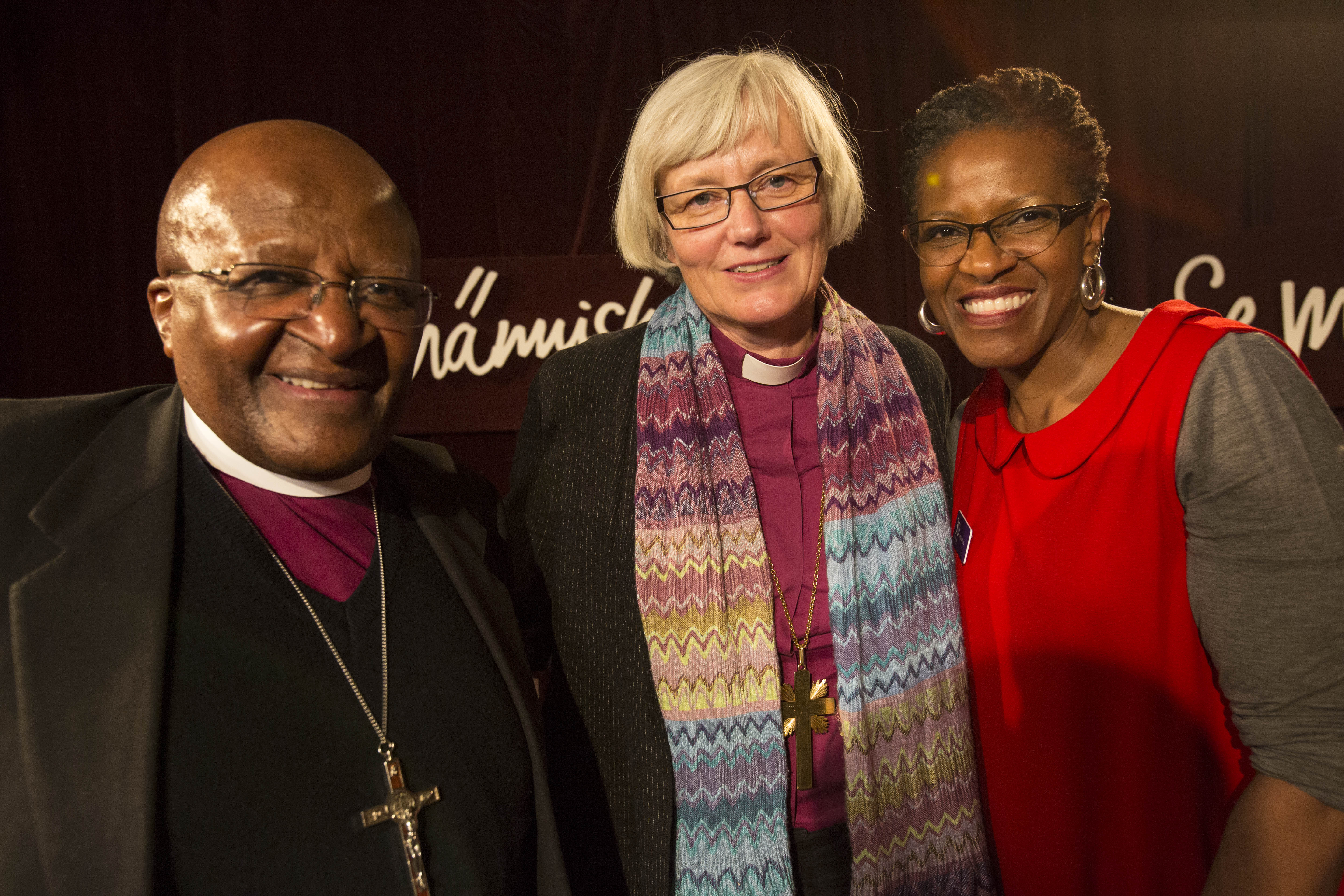 Caption: The Church of Sweden has regularly welcomed guests from South Africa to the Book Fair. This picture, taken at the 2014 Book Fair, shows Bishop Desmond Tutu together with Archbishop Antje Jackelén and Mpho Tutu. Photo: Mikael Ringlander