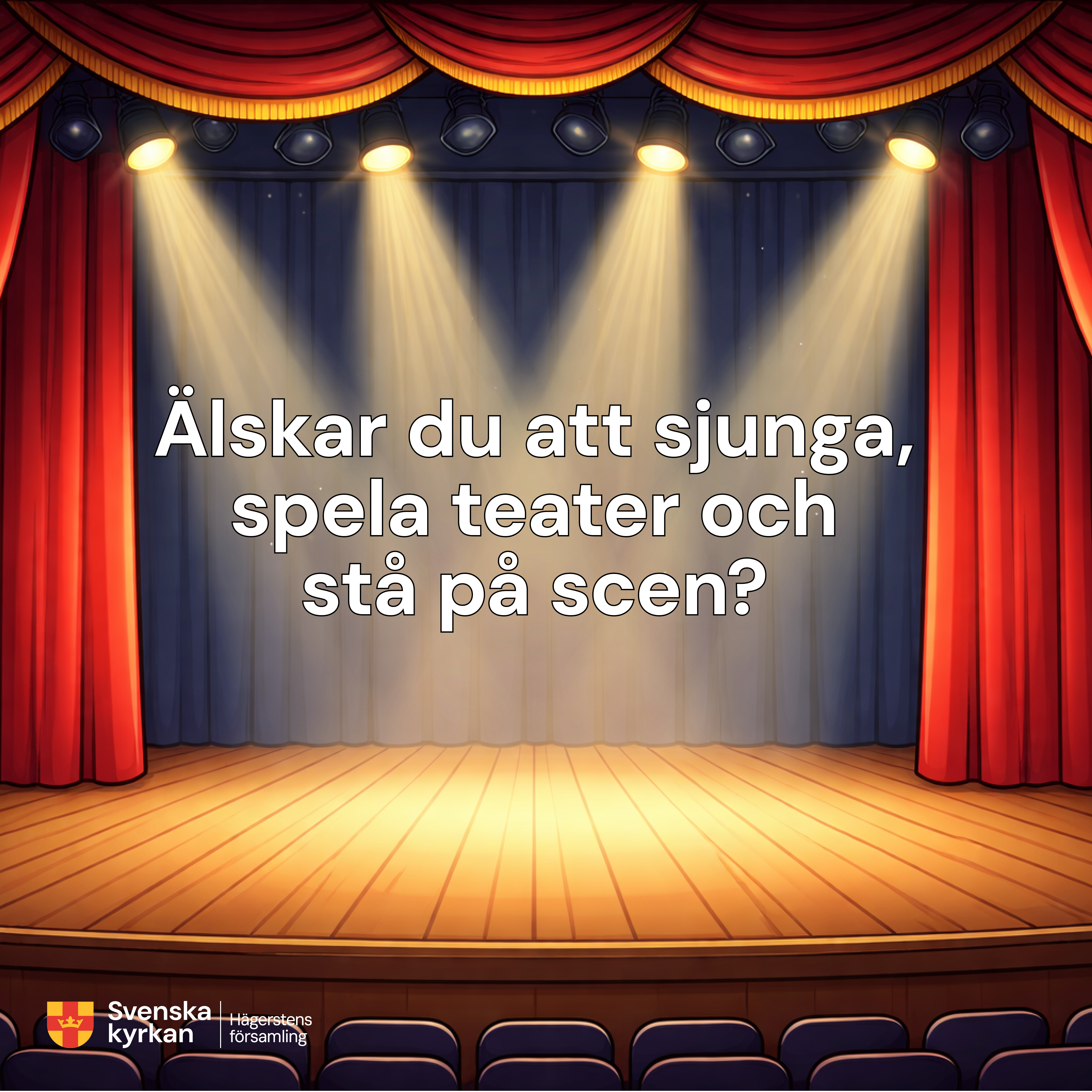 Ska du börja årskurs 5 till årskurs 7 och vill vara med på ett intensivt och roligt musikteaterläger? Då ska du anmäla dig till musikteaterläger i Mälarhöjdens kyrka som är mellan 15-17 juni, kl. 10.00–14.00, och lunch serveras. Ingen avgift.