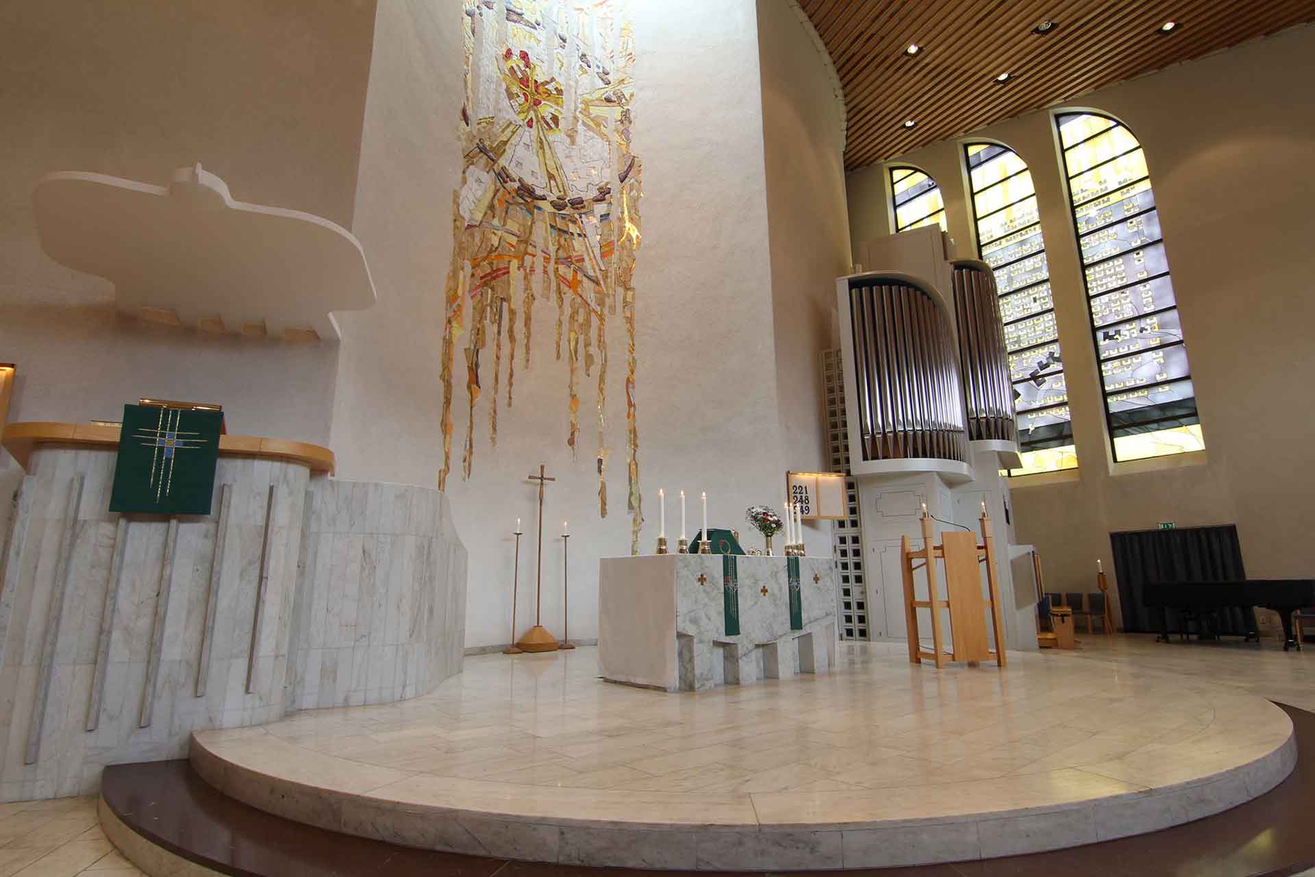 Varje vecka firas olika slags gudstjänster i Mariakyrkan. När kyrkan är öppen är du också välkommen in att tända ljus eller bara sitta ner en stund i det vackra kyrkorummet.