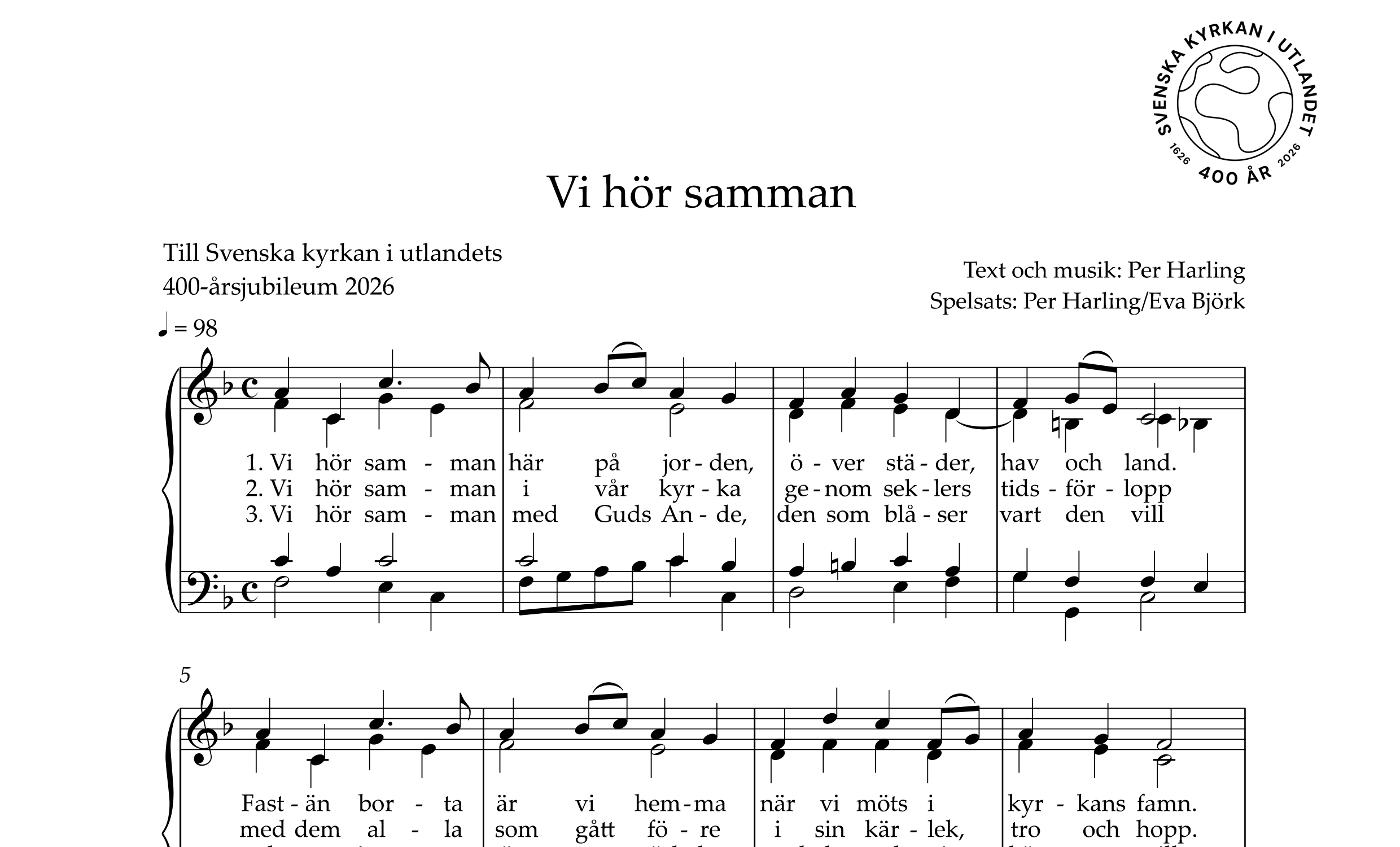 Ett sätt att uppmärksamma 400-årsjubileet är att anordna en gudstjänst i din församling. Förutom körverk, psalm och bön som är nyskrivna för året delar vi här fler psalmer. För några år sedan skrev Per Harling ett flertal psalmer till Svenska kyrkan i utlandet, till inspirationsboken Tro, Öppenhet, Hopp, utgiven 2015.