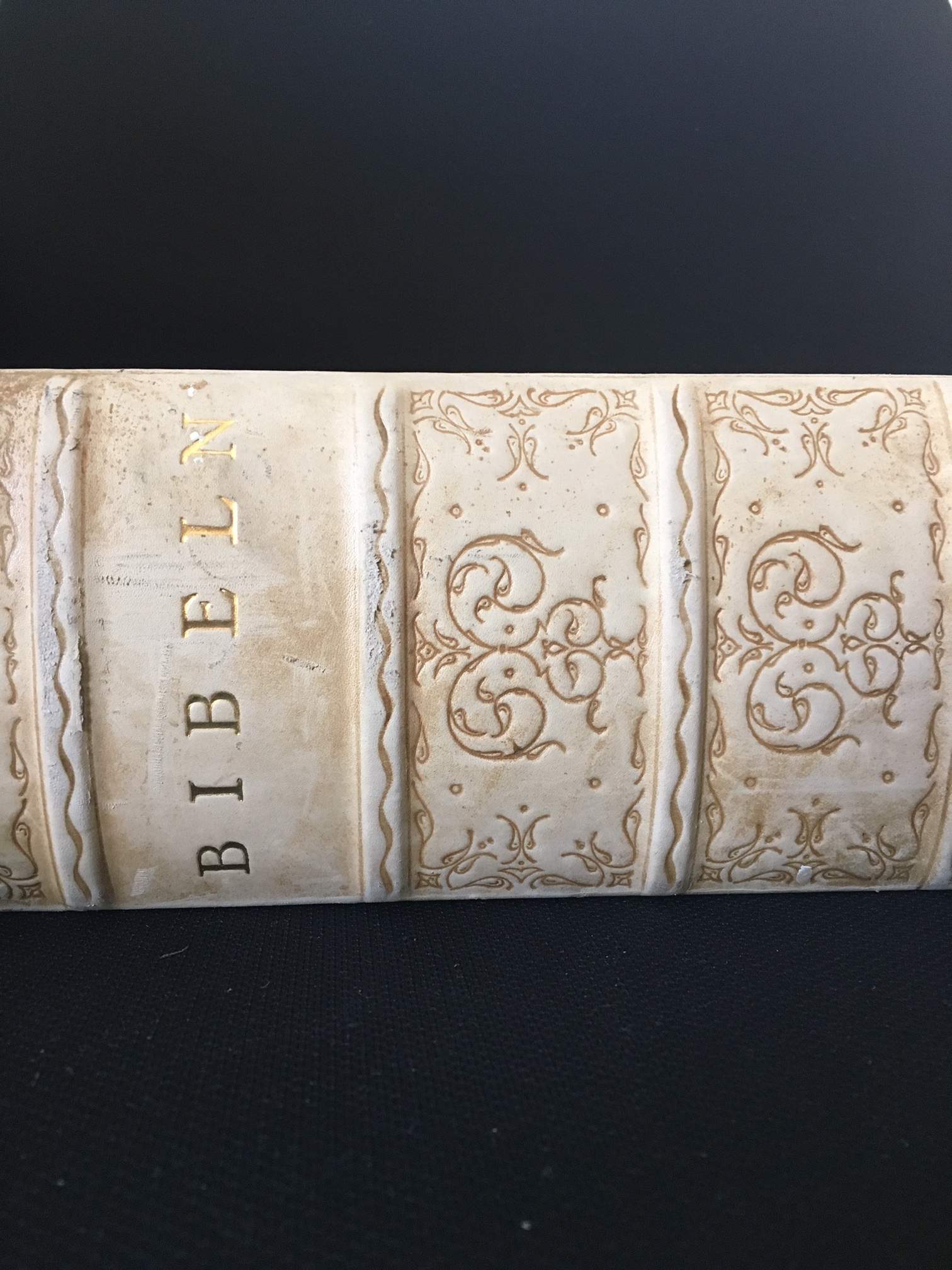 På bibelns försättsblad står det Matteusevangeliet 24:33. I Bibel 2000 blir översättningen av bibelordet: ”På samma sätt vet ni när ni ser allt detta hända att han är nära, utanför dörren.” I 1917 års översättning är samma text ”Likaså, när I sen allt detta, då kunnen I ock veta att han är nära och står för dörren.” Till den vita bibeln hör också ett vackert bokmärke med flera bibelord och illustrationer. Kanske är det fru Gustava Maria Charlotta som gjort dem?