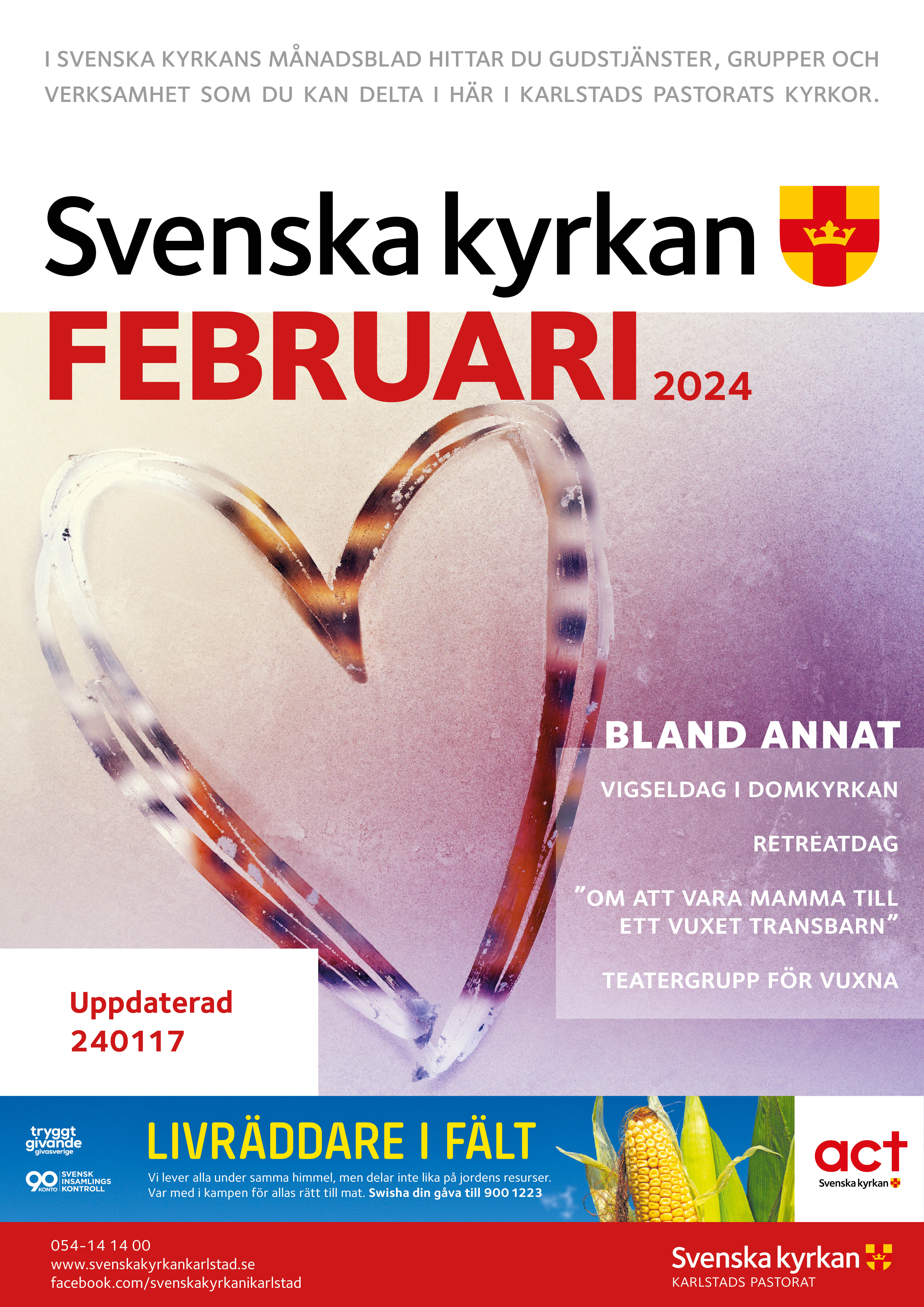 Månadsbladet kommer i början av varje månad och du kan få det antingen på papper eller på e-post. Det är gratis och du beställer det genom att kontakta expeditionen på 054-14 14 00 eller karlstads.pastorat@svenskakyrkan.se.