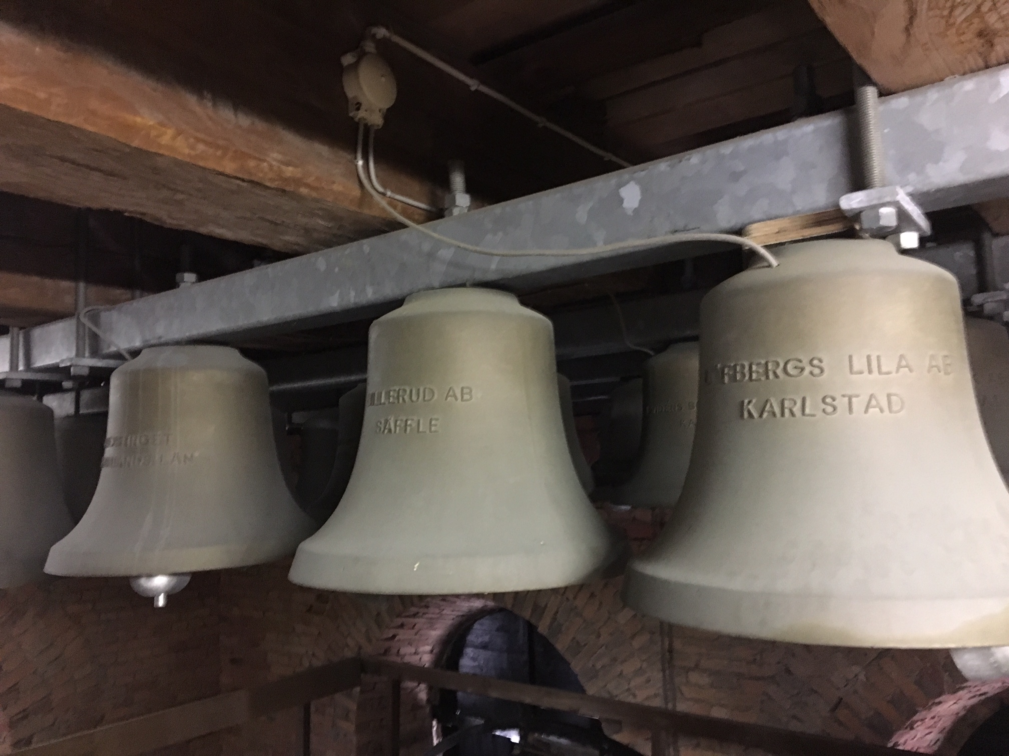 Klockorna är skänkta av Karlstads kommun, av företag och privatpersoner. Bergholtz klockgjuteri i Stockholm som har gjort de 25 klockorna i tornet. Förutom dem finns också en 26:e liten klocka inne i sakristian. Klockan är en gåva från klockgjuteriet till Domkyrkan vid invigningen.