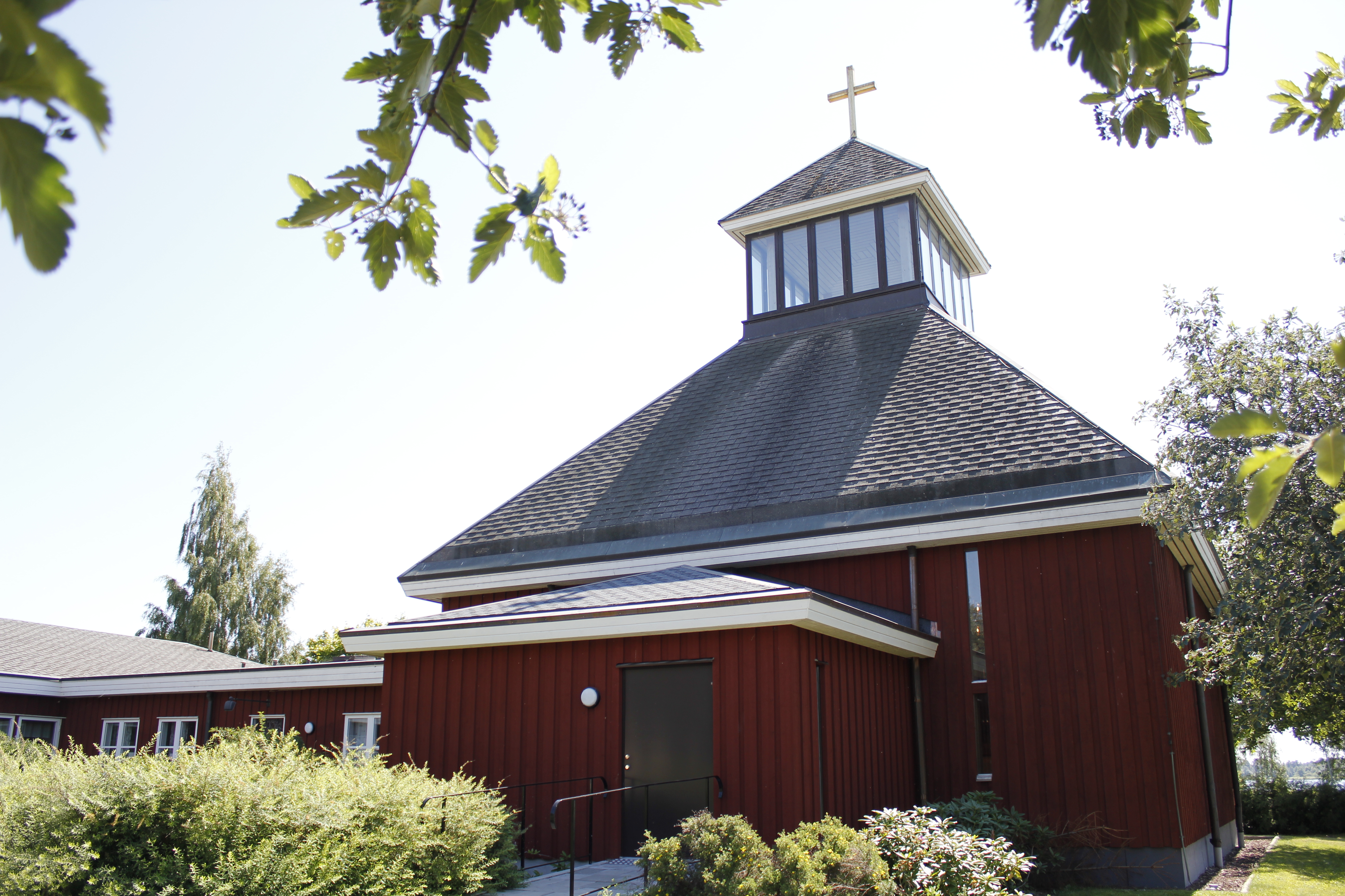 Alldeles i Mariebergsviken ligger Vikenkyrkan. En modern träkyrka med ett kvadratiskt hemtrevligt kyrkorum.