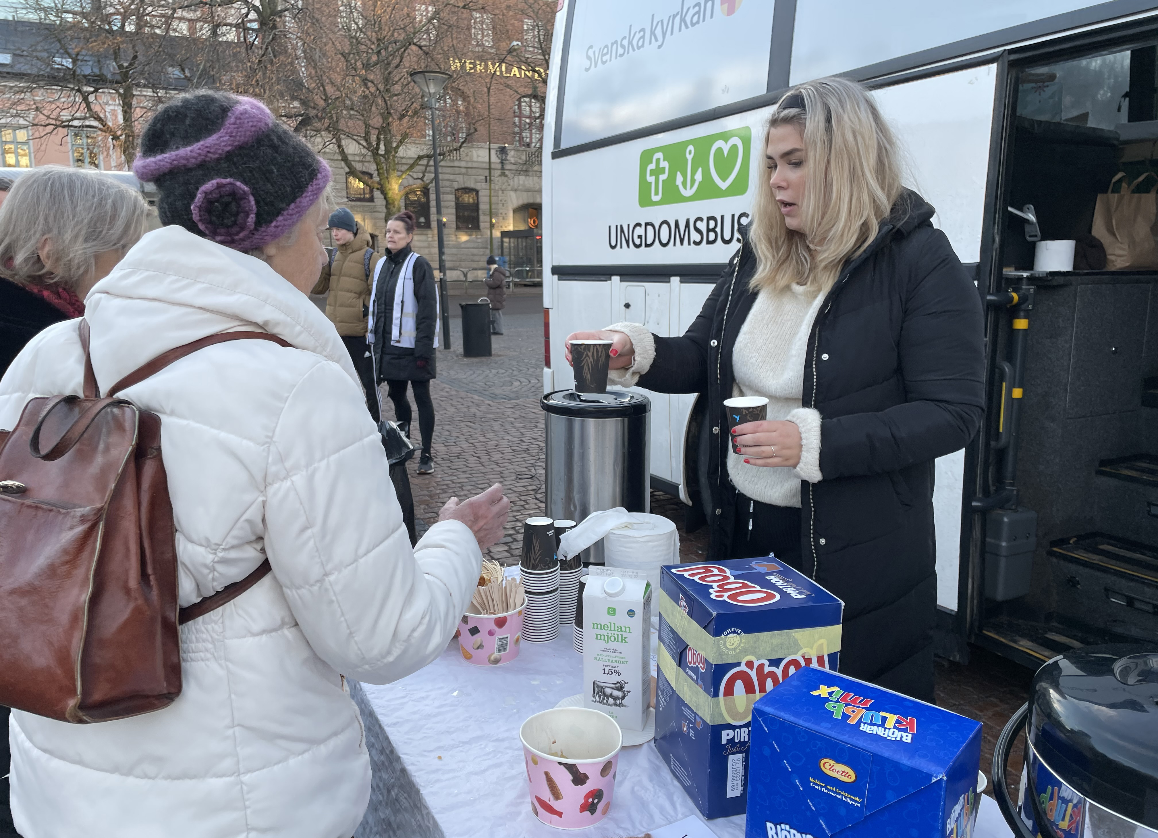 Som volontär på Ungdomsbussen serverar du fika och pratar med alla som kommer förbi. Det kan bli många roliga och djupa samtal under en fredagskväll. Att ge ett vänligt bemötande och finnas där som en lyssnande vuxen är en viktig uppgift. Ibland kan vi också behöva hjälpa ungdomar som behöver det.