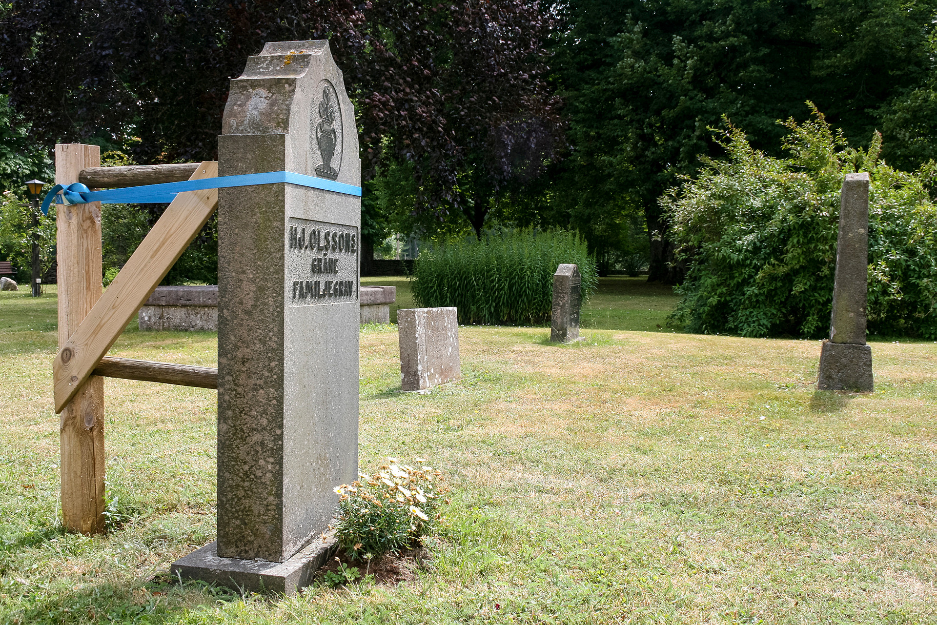 Lösa och osäkra stenar innebär en risk dels för kyrkogårdarnas besökare men också för kyrkogårdens personal. Därför vidtar vi vid kritiska lägen temporära åtgärder, såsom att lägga ner en sten eller montera en tillfällig stöttningsanordning.