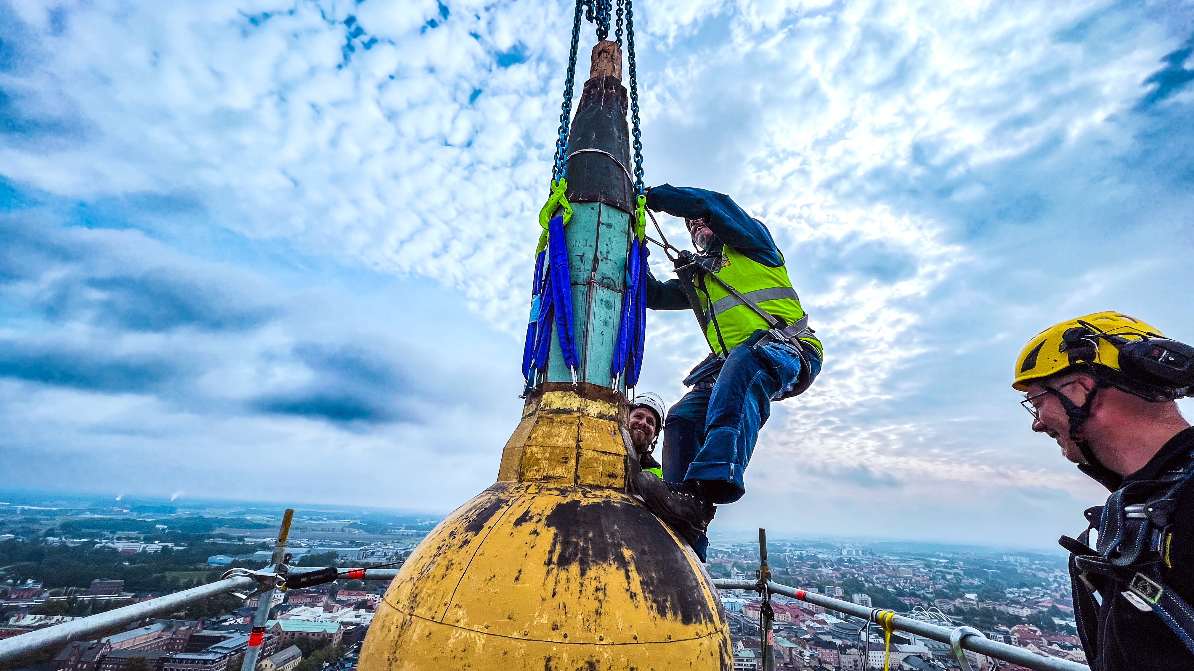 Den 12 september 2023 lyftes domkyrkospiran ner för att förgyllas under vintern. Här kan du se bilder och filmer från arbetet.