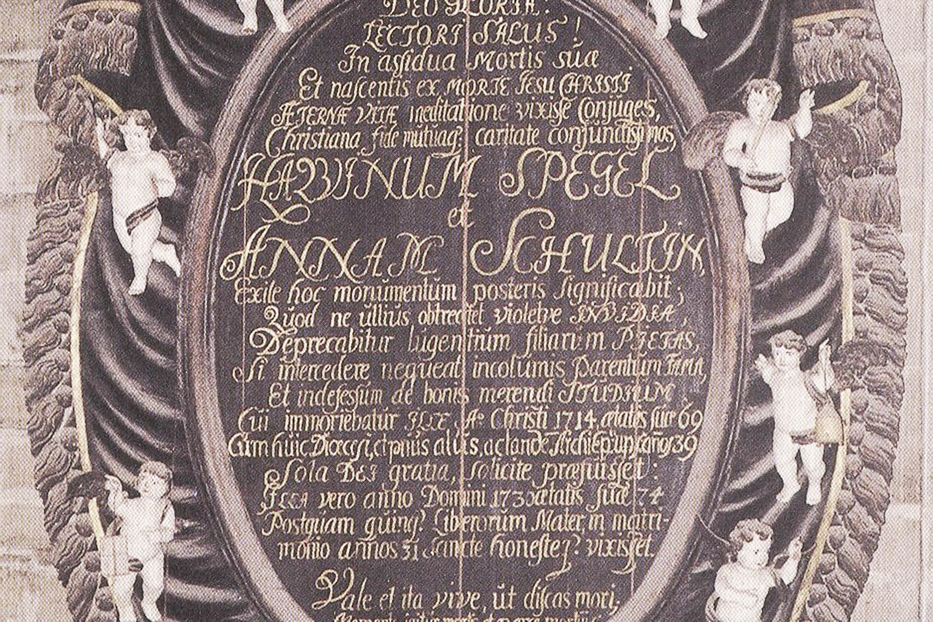 Biskop Haquin Spegel föddes som Håkan Spegel 1645 i Ronneby. Dog 1714 i Uppsala. Prästvigdes 1671, blev biskop i Skara 1685 och biskop i Linköping 1693. Utsågs 1711 till ärkebiskop. Spegel var också hovpredikant hos änkedrottning Hedvig Eleonora och vigde 1680 kung Karl XI och Ulrika Eleonora. Spegel skrev text till flera psalmer, t.ex. “Min själ, du måste nu glömma” och “Lovad vare Herran”. Haquin Spegel var gift med Anna Schultin, död 1730. Haquin Spegel ligger begravd i Linköpings domkyrka och det finns ett epitafium över honom och ett för hans son Jakob Spegel, född 1684 och död 1705.