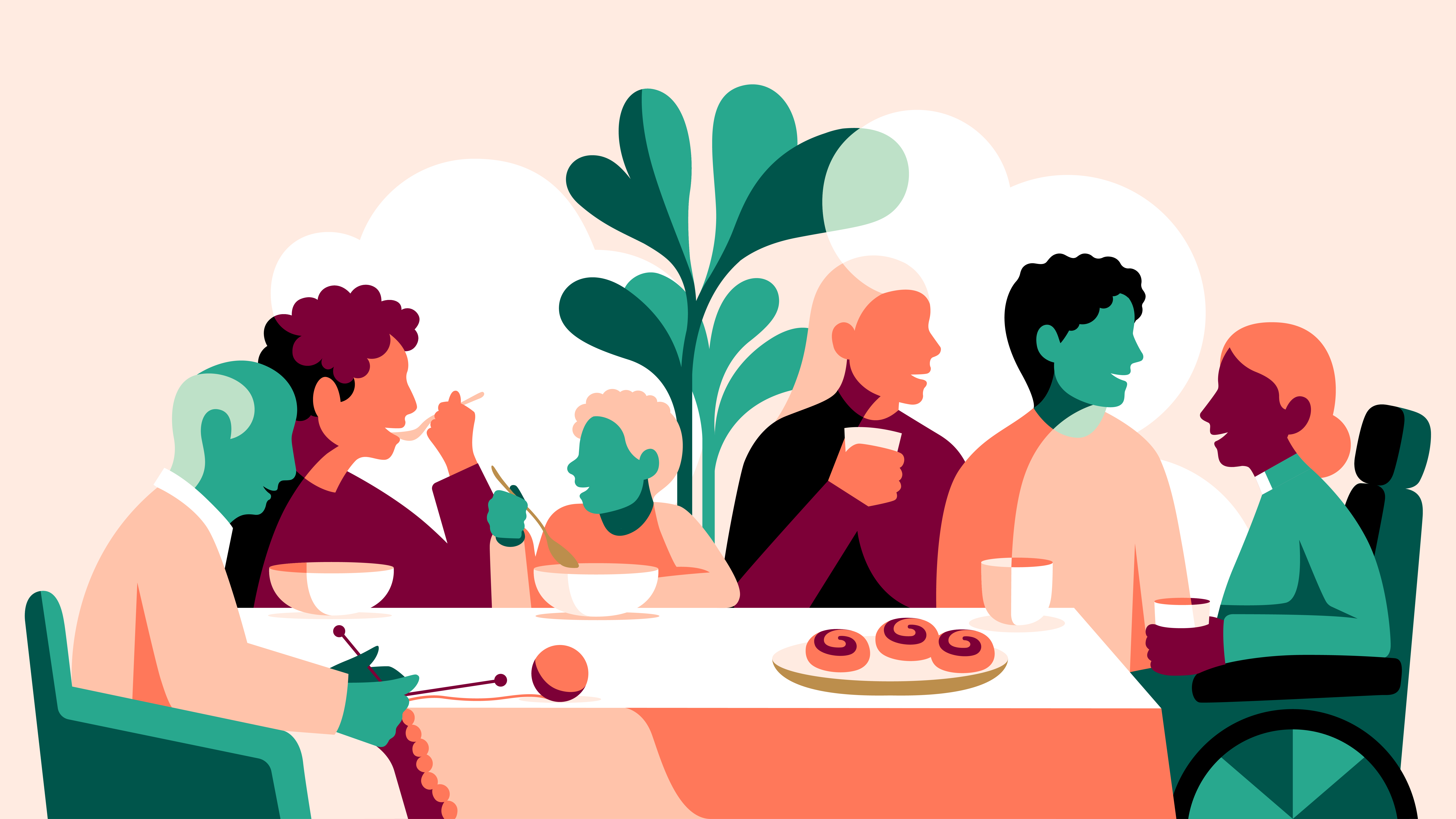 Vi delar traditioner, erfarenheter och kunskap genom att laga mat tillsammans, äta, bjuda in föreläsare, göra utflykter och annat vi bestämmer i gruppen.