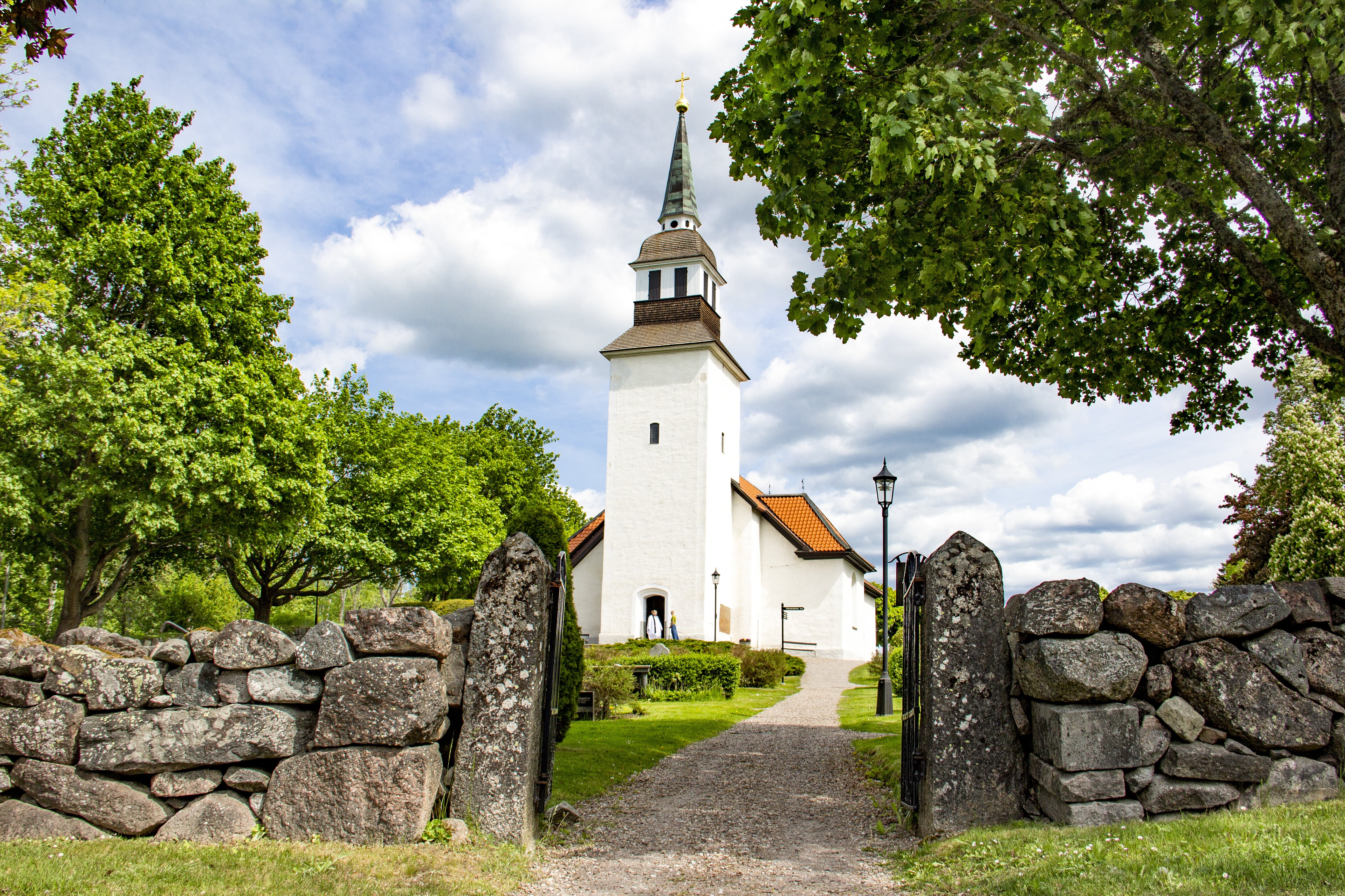 Landeryds kyrka som den nu ser ut är från 1753. Den ursprungliga kyrkan var från senare delen av 1100-talet, men kyrkan var tillbyggd några gånger. Efter ett kort och intensivt arbete stod den nya kyrkan färdig att invigas av biskop Rhyzelius den 29 juli 1753. Allt var visserligen inte riktigt klart – innertaket kom året efter och tornspiran först 1762. Av den gamla kyrkan är den västra väggen och nedre delen av tornet bevarade, liksom ett antal värdefulla inventarier: dopfunt och krucifix från medeltiden, liksom predikstolen från 1600-talet.