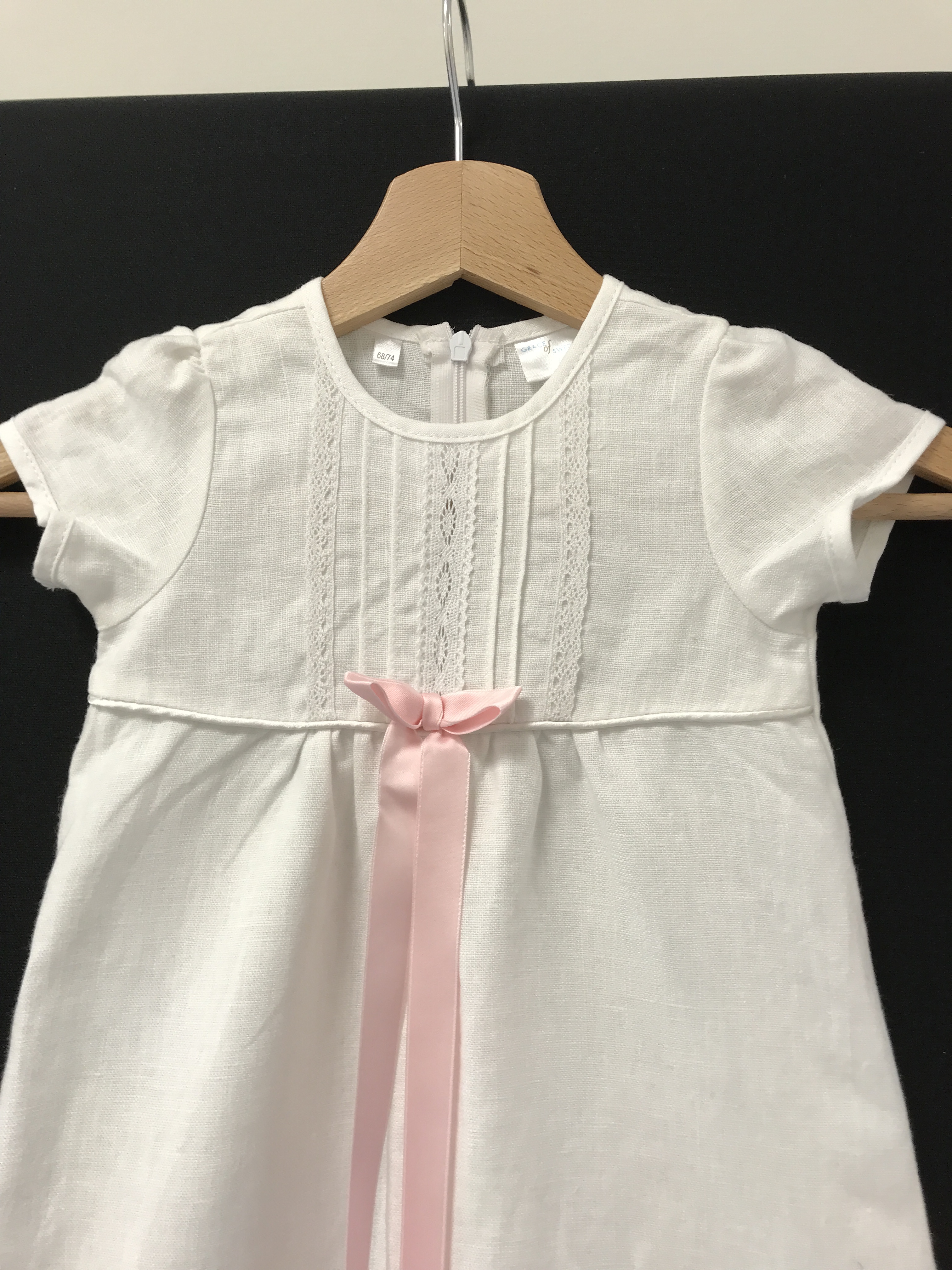 Ljungskile församling har två olika dopklänningar (stl ca 68/74) som ni är välkomna att låna. På bilden bredvid ser ni vilka band som finns att välja mellan till linneklänningen.