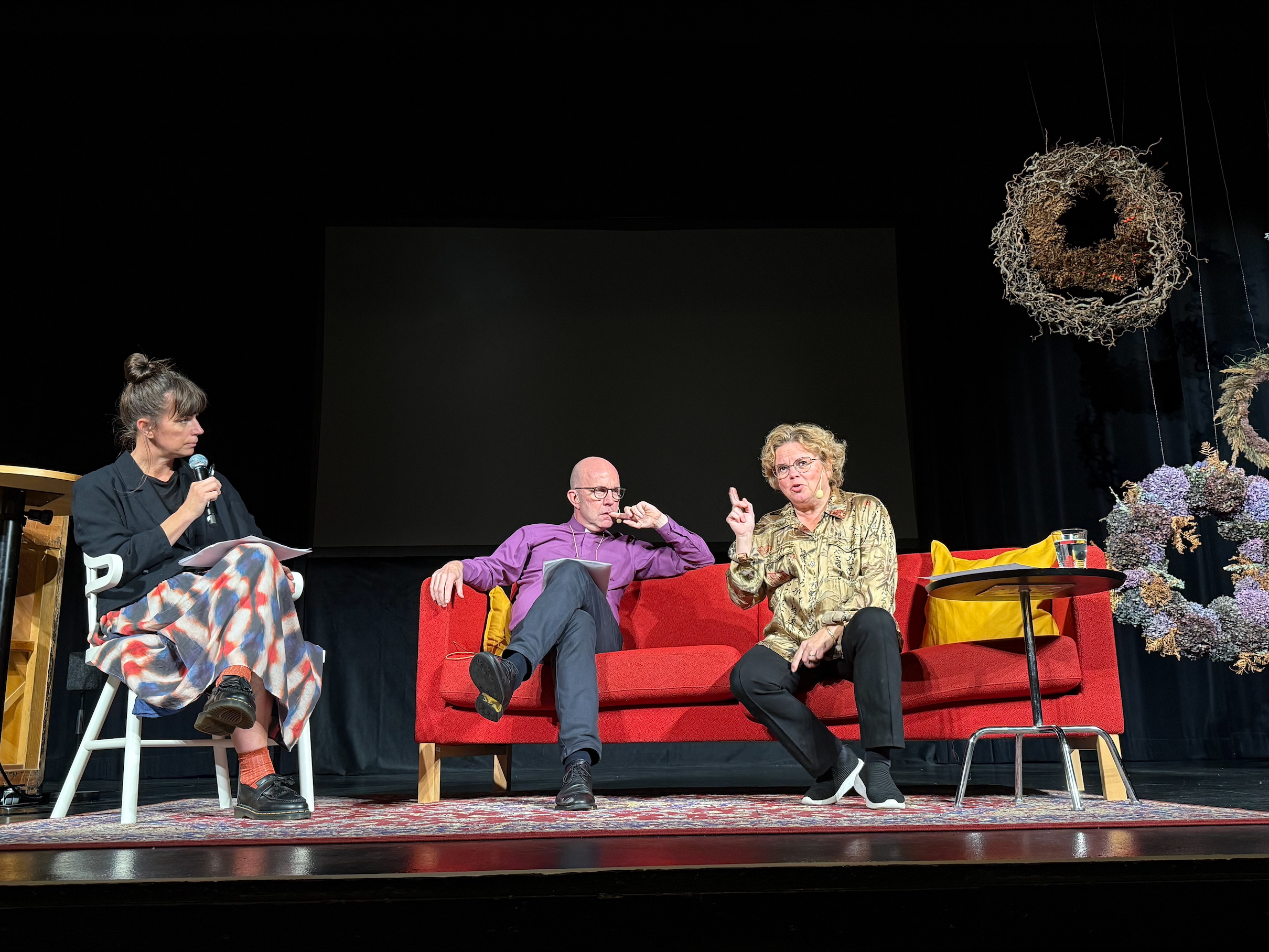 Isabelle McCallister, känd programledare som kallar sig själv omställningsaktivist, höll ihop dagen. Först ut var biskopen själv, som lyfte fram tre viktiga ord i kyrkans klimatarbete: insikt, mod och omställningsglädje.