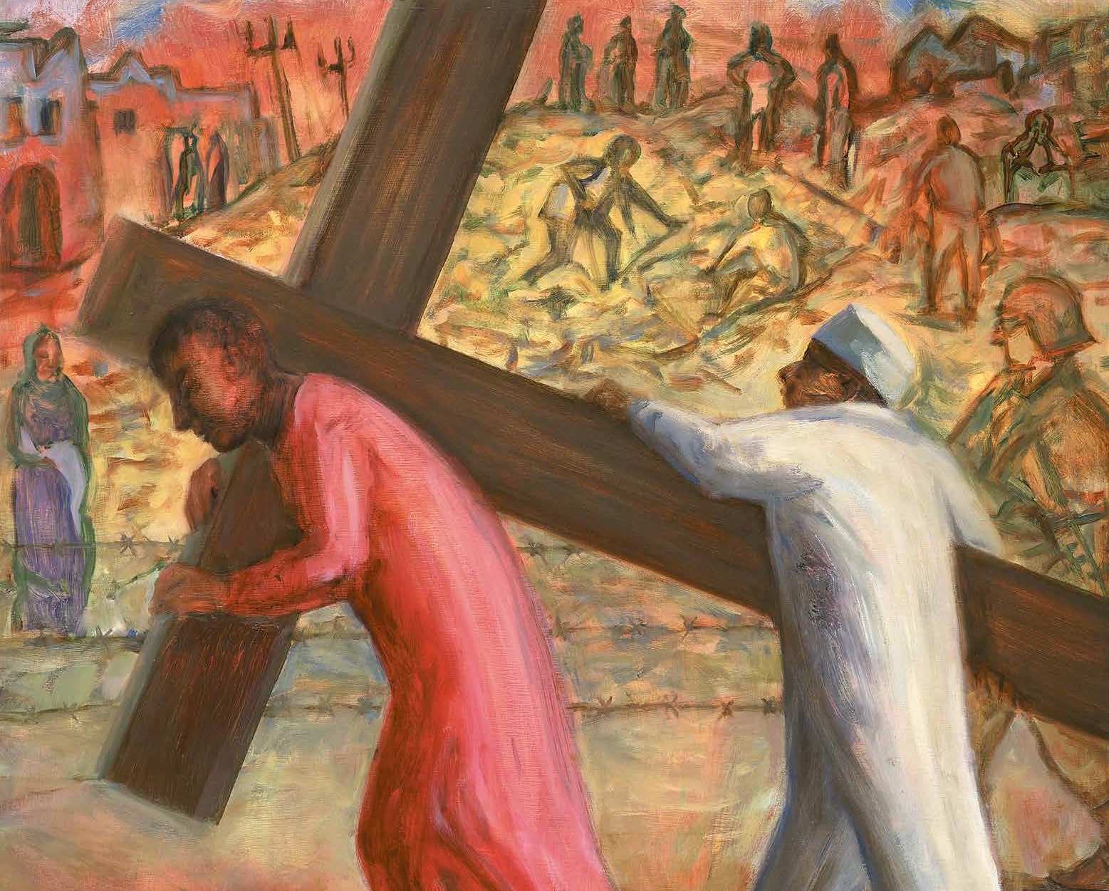 Station V: Simon hjälper Jesus att bära korset.