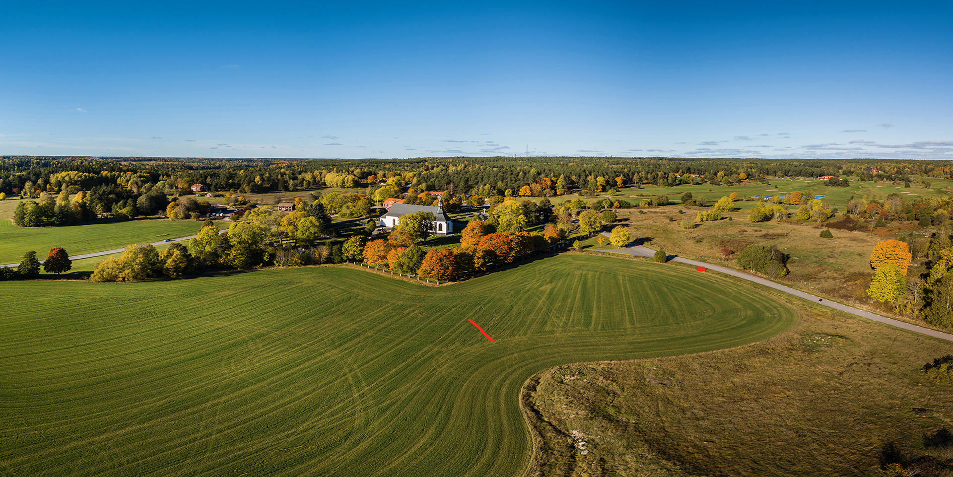 På området kring Åkersberga golfklubbs anläggning fanns ett flertal gårdar under bronsåldern. Deras långhus har sannolikt varit belägna på de platser som fotografierna ovan visar. I avsikt att underlätta för betraktaren står fotografen konsekvent på de platser där långhusen troligen funnits och riktar kameran mot golfanläggningens centrum.