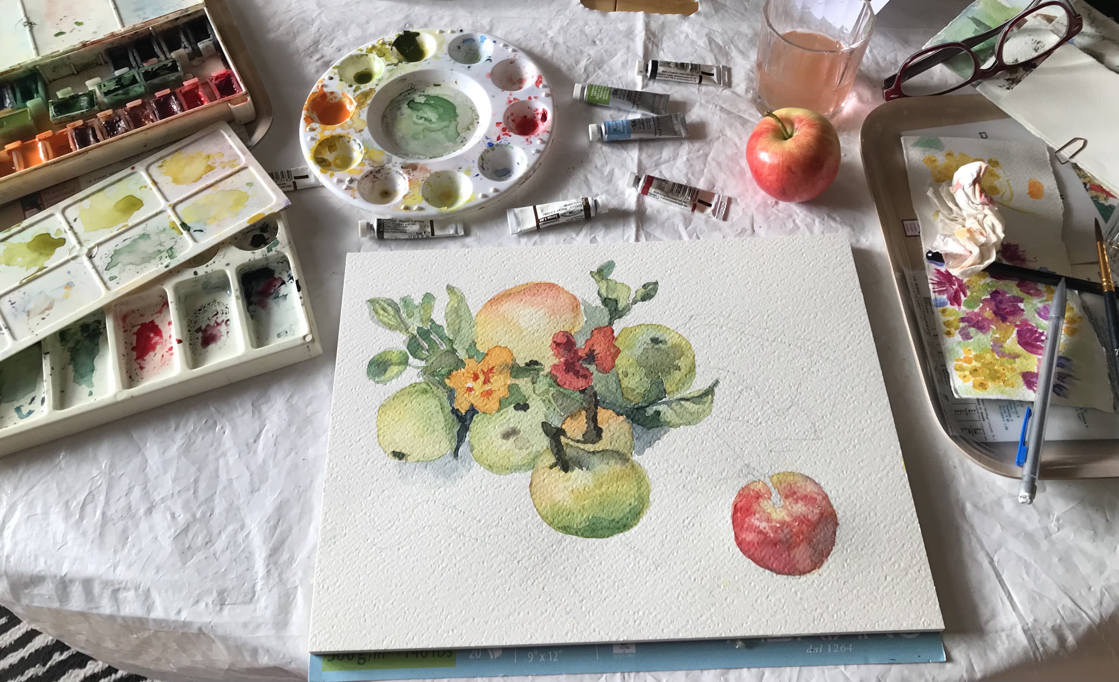 Kursledare Lena Sjöberg är medlem i Ateljégruppen Sofiamålarna, Södermalm. Lena har hållit flera uppskattade akvarellkurser i kyrkstugorna de senaste åren.