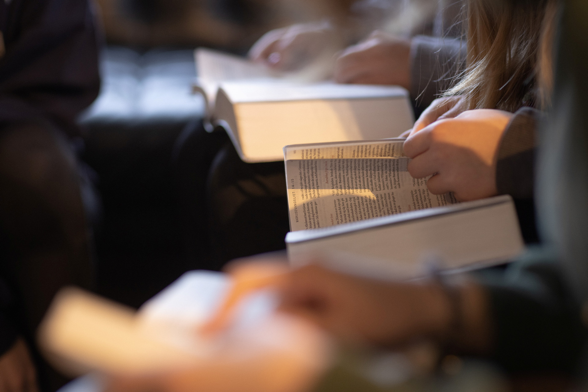Vi fikar, läser och begrundar bibelställen tillsammans med präst i församlingshemmen.