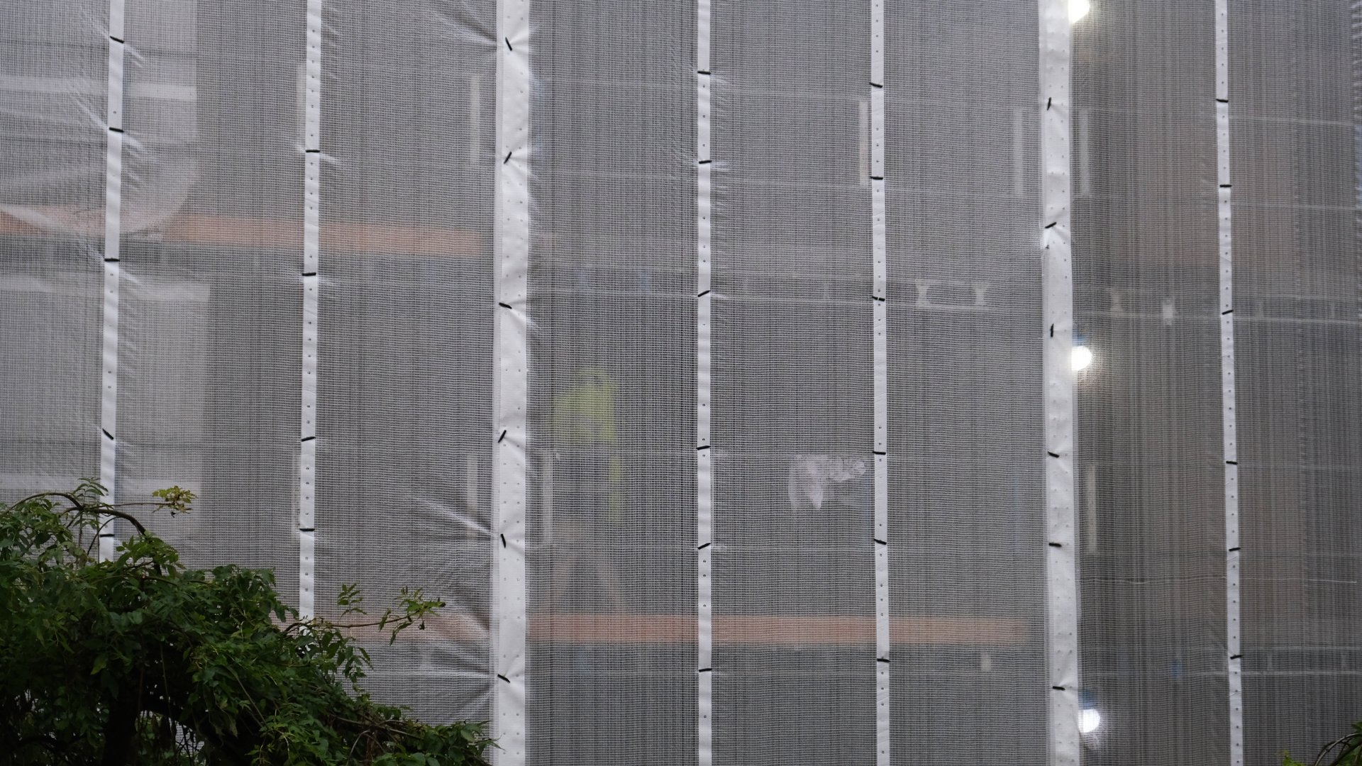 Hissen har som sagt byggts in innanför själva planket med ramp upp och en avsats innan instigning i hissen. Fodringar runt in/utgångarna var gjorda så att inget kan fall ner. Just inför blästringen har dörrarna och fönstren täckts in. På själva planket runt om har även taggtråd monterats.