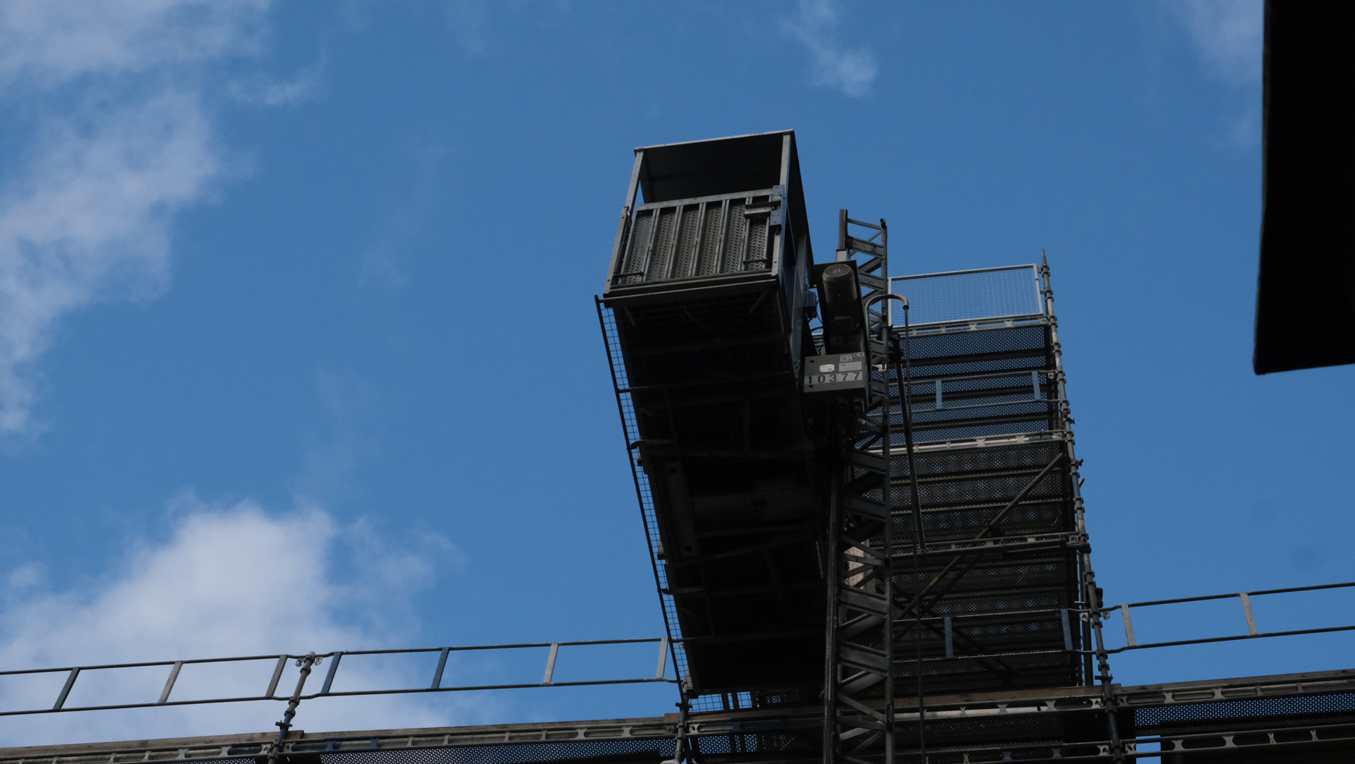 Ställningarna är uppe längst hela fasaden mot innergården och en hiss monterades av Sebastian Leveau Payton och Jimmy Utriainen, Svenska Hissmontage AB under torsdagen och fredagen.