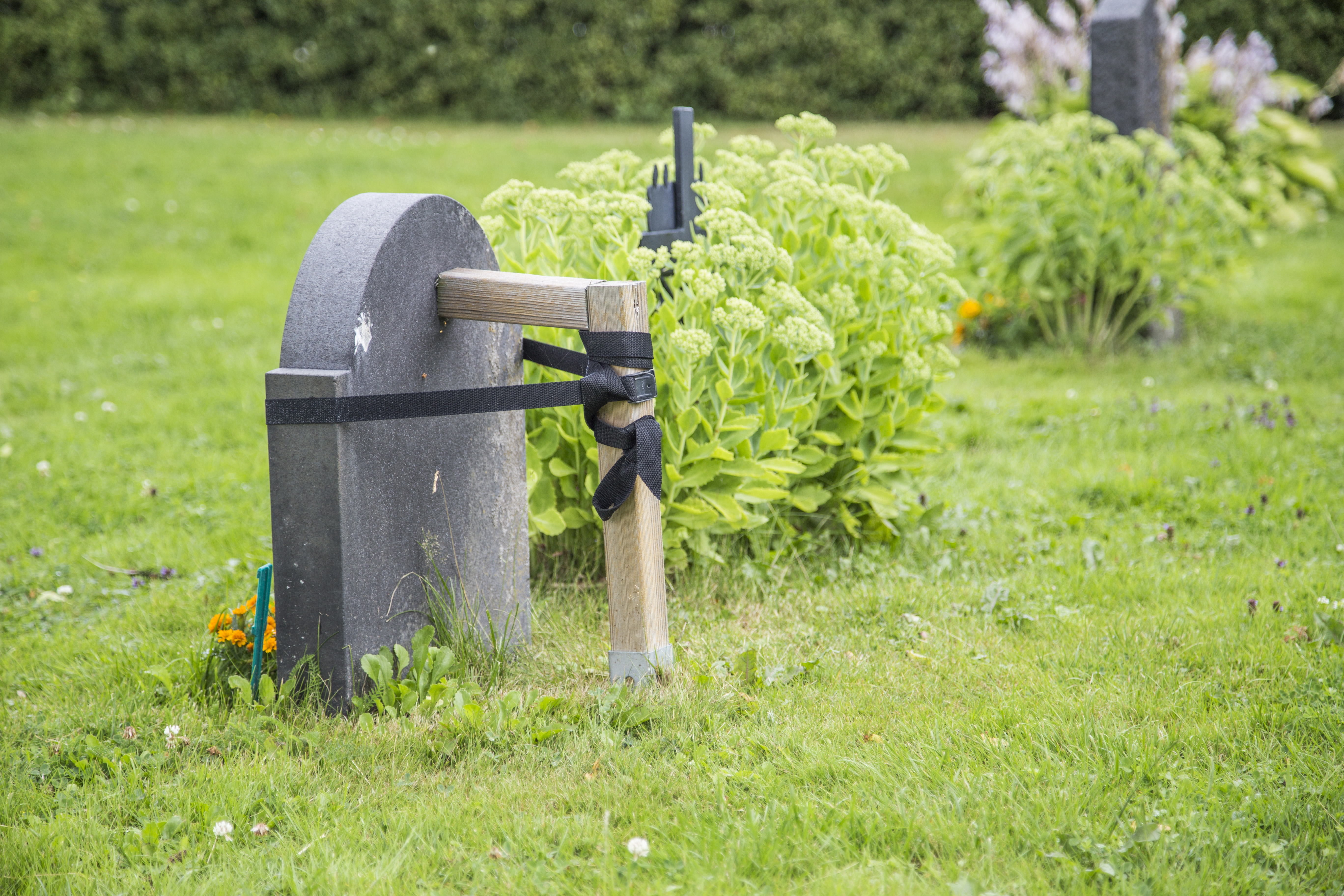 • Kyrkogårdsförvaltningarna arbetar för att lösa problemet med den osäkra gravstenen.