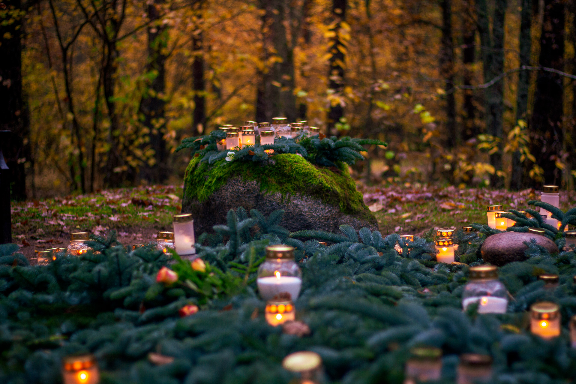 delas av en central axel, kantad av imponerande thujor och en lindallé, som på båda sidor omges av kist- och urngravområden.