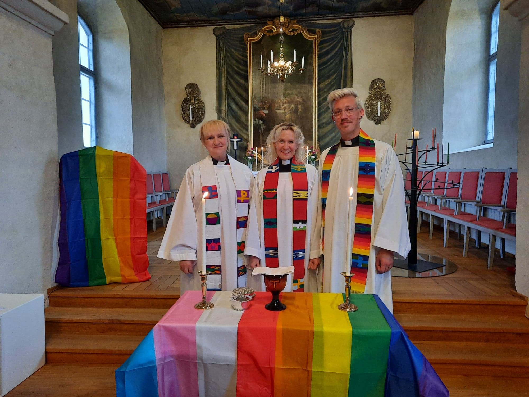 Därefter avslutar vi Teams-samtalet, för om en liten stund ska församlingen få besök från Värnamo kommun. Kommunstyrelsens ordförande, förvaltningschefen och en kommunikatör har bokat in sig för att få ta del av församlingens regnbågsarbete.