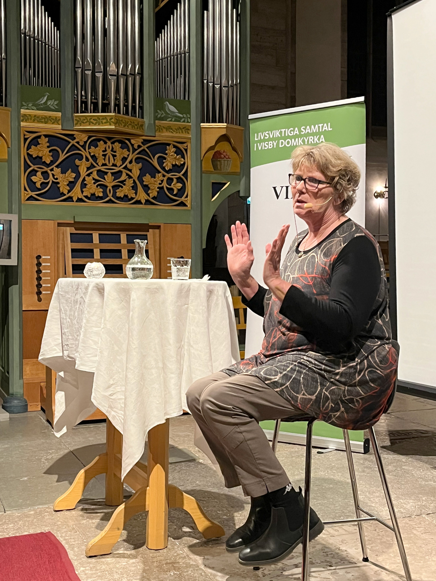 Kvällen inleddes med några skämtsamma rader, men snart lade sig skratten. Den fullsatta kyrkan – omkring 350 personer hade sökt sig till domkyrkan denna kväll – blev andäktigt tyst. Under större delen av föredraget vilade en kompakt stillhet över rummet när Annika delade sin livsberättelse.